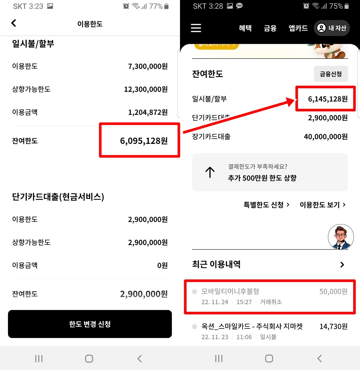 (한도부족 방지차원 : 미리 교통카드로 쓸 5만원 한도를 확보하는 차원에서 가짜로 5만원 쓴것처럼 한답니다.)