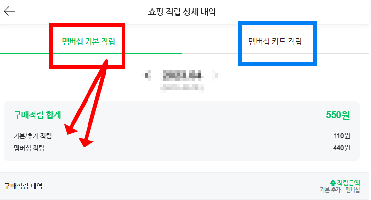 빨간색 박스 멤버십 기본적립과 파란색 박스 멤버십 카드 적립으로 말이죠.